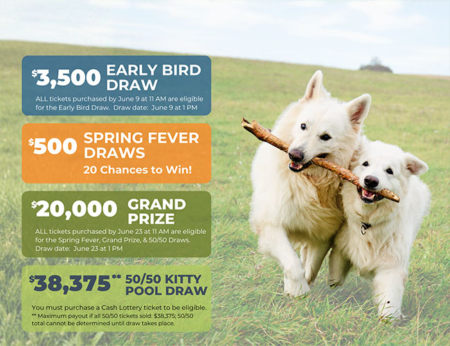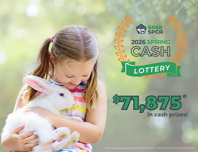 Through your support of the SaskSPCA Spring Cash Lottery, you are helping improve the lives of animals - today and into the future. You are helping to advocate for improved animal protection legislation. You’re making it possible for pets to have access to nutritious food, even during tough financial times. You are helping to create safe places for animals when their owners are in crisis.